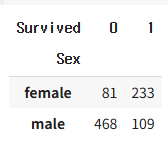 pd.crosstab(df['Sex'], df['Survived'])