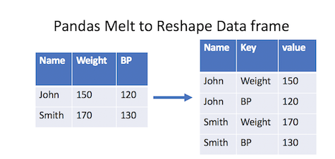 .melt(col_name, id_vars = 기준컬럼) #wide dataframe을 long dataframe으로 변경하는 함수