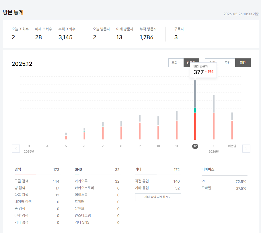 - 이걸 파악하려면, 티스토리의 대시보드를 확인해야한다.