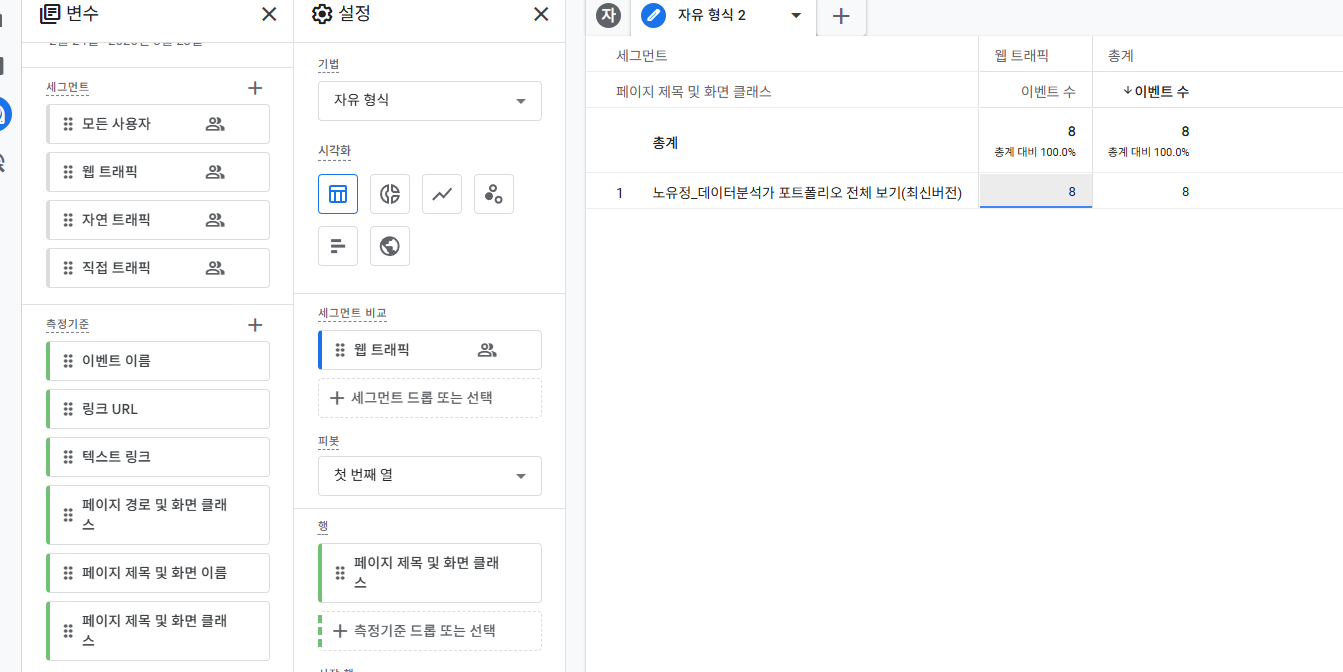 지금 이 퍼널에서 보고싶은 것들은 이런 것들이다. 내가 처음 설정한 KPI와 연관된 것들.