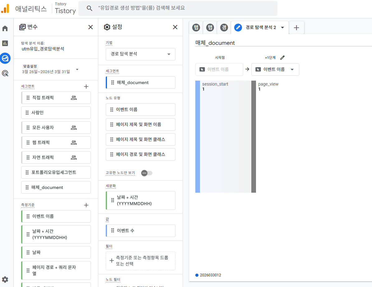 가능하겠다! 그 외에도 path도 확인가능하고.. 정말로 raw event가 다 모였구나. 그런데, 데이터 양이 적긴 적다 ㅎㅎ 이제 4일 쌓은거라.. 일주일은 더 쌓고 진행해야겠다.