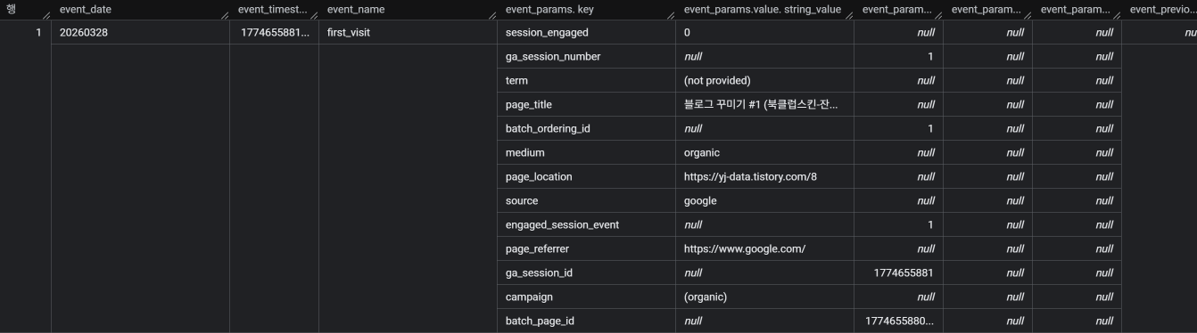 2026.04.01 - [Project] - [블로그프로젝트#12] BigQuery Export로 쌓은 raw event 살펴보기