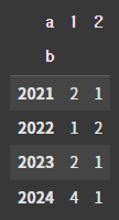 'b':[2021,2022,2024,2023,2022,2023,2024,2022,2024,2024,2021,2024,2023,2021]